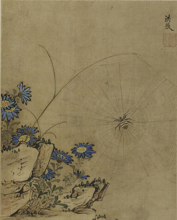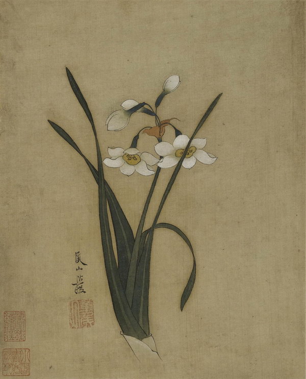此册钩勒精细,色泽清丽。经吴湖帆考证,作于崇祯六年癸酉(1633),作者时年36岁,是其花鸟画精品。