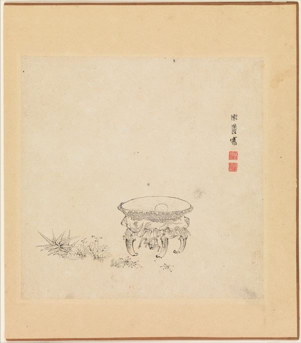 这些象征性的静物题材在文人画中是史无前例的。相反,这些高度精致的图像与当时豪华工艺品上的装饰图案有关,包括模制墨饼、印刷文具和宜兴陶瓷的雕刻装饰,反映了陈洪绶早期参与创作小说和戏剧木版画插图的经历。