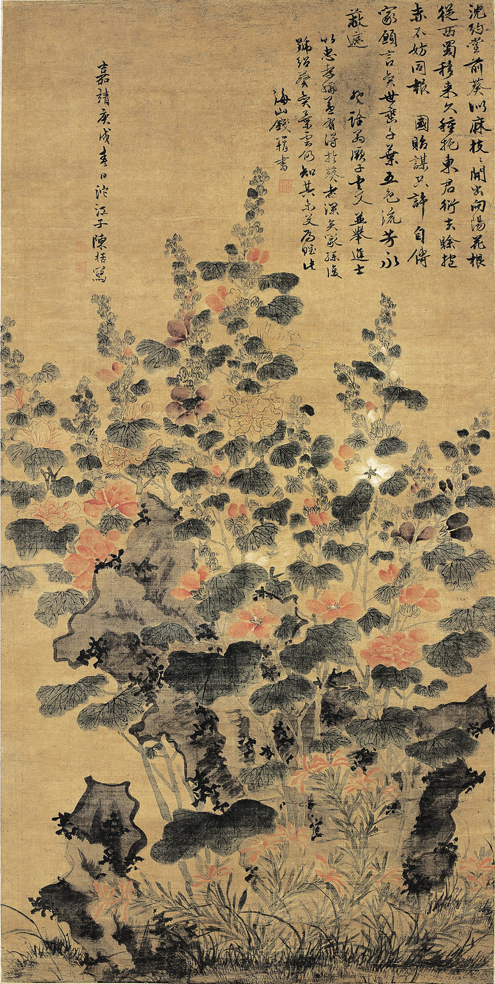 五色蜀葵图轴 | 明代/陈栝