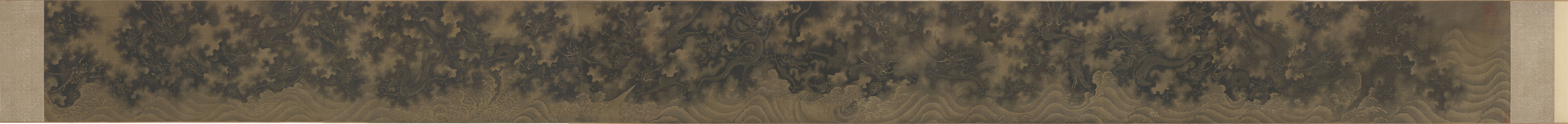 画卷描绘云雾和潮水之中翻腾的三十多条姿态各异的龙