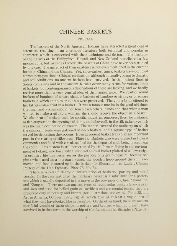 《Chinese baskets》中国篮篓是德裔美国汉学家Berthold Laufer对中国传统竹编工艺的研究编著,全书使用了38幅图文介绍了中国的竹编篮篓工艺。
