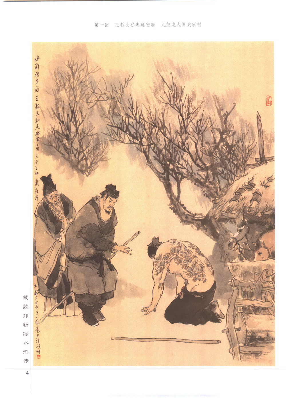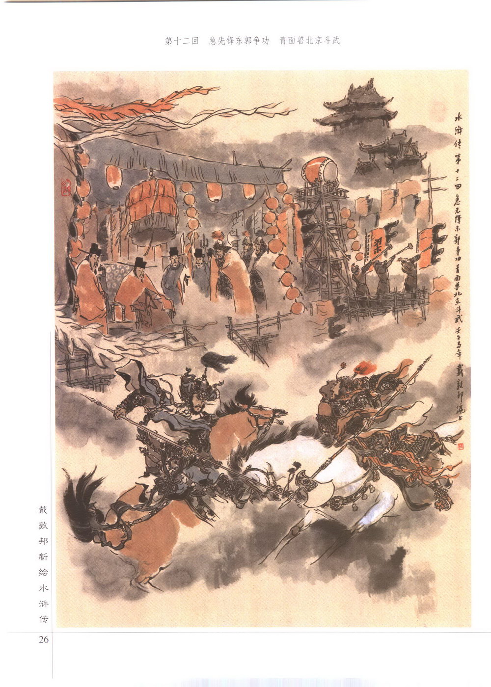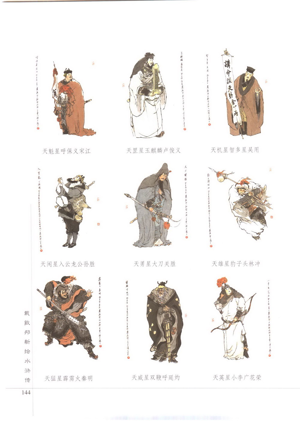本画集含两部分:以通行的七十回本《水浒传》为文学底本,取每回主旨创绘两幅,计一百四十二幅(含“楔子”两幅);一百零八帧梁山好汉艺术造型。