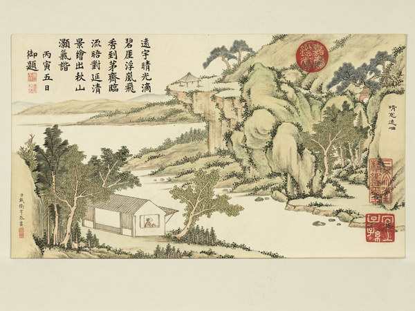 林亭节瑞,榴院明霞,柳溪观渡,兰沼新凉,薰风调轸,脩篁閒籁,新荷出水,松涛昼静,梧轩月午,晴窗远岫。