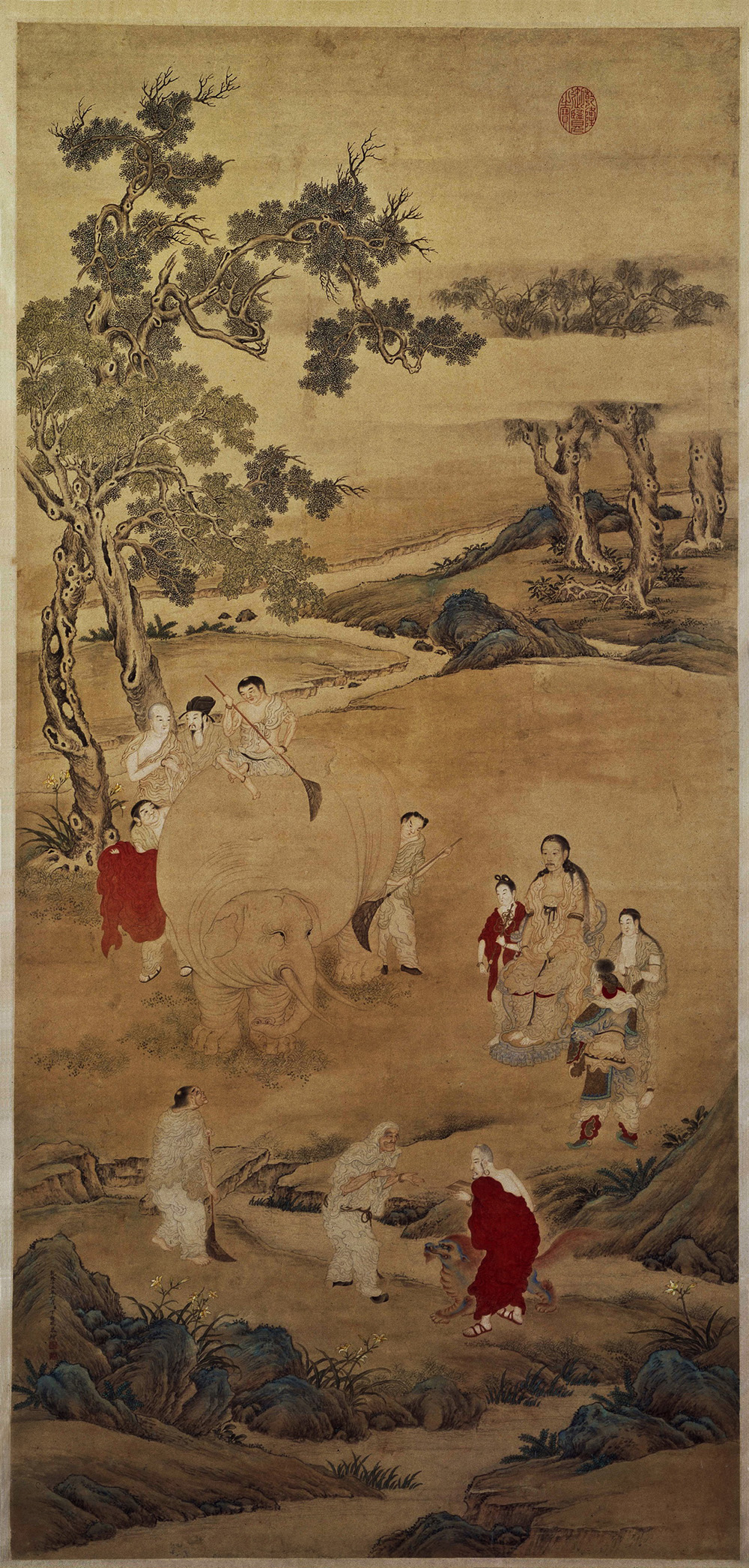 乾隆皇帝洗象图轴 | 清代/丁观鹏