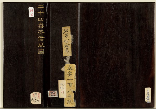 钤印:嘉慶御覽之寶、嘉慶鑑賞、石渠寶笈、三希堂精鑑璽、宜子孫、寶笈三編、嘉慶御覽之寶、茂對時育萬物、宣統御覽之寶、比德、朗潤、會心不遠、德充符