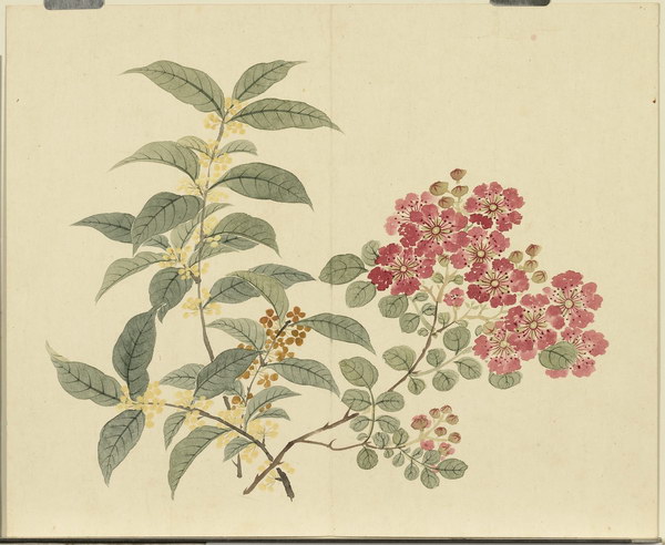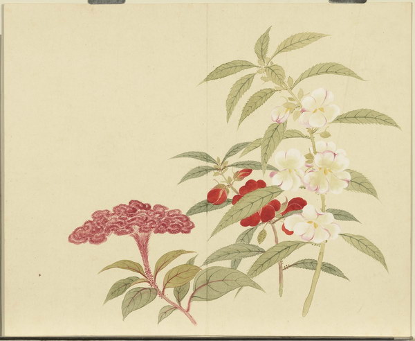 秋景:兰花和菊花、桂花和紫薇、扶桑花和剪秋羅、美人蕉和(黃花不知名)、牽牛花和午時花、秋葵和(藍紫色花,不知名)、雞冠花和鳳仙花(橙紅色、桃色兩種)、藍菊和玉簪花、凌霄花和(白花不知名)