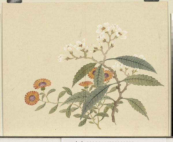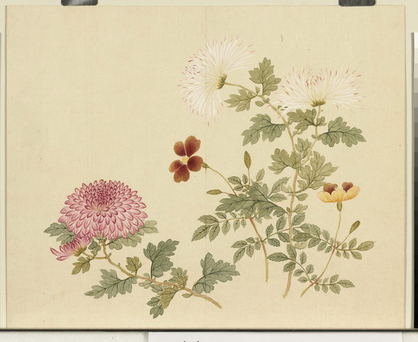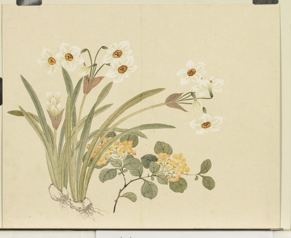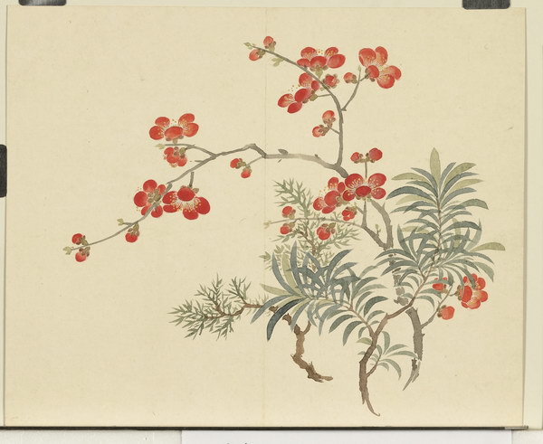 冬景:茶花和兰花、菊花等、菊花等、芙蓉和紅蓼、綠萼梅和茶花、月季等、羅漢松和紅梅、水仙花等、蠟梅等、天竺和萬年青