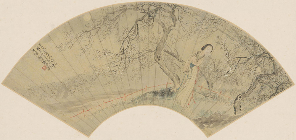 梅花仕女图扇 | 清代/费以耕