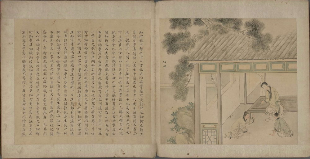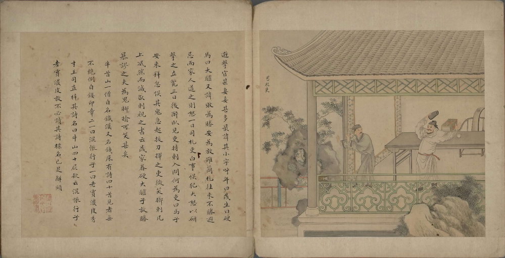 画册依次描绘:司札吏、细柳、牛成章、崔猛、阿英、长亭、三生、贾奉雉、素秋、席方平 十个《聊斋》中的故事,每个故事配插图一幅。清代写绘本。