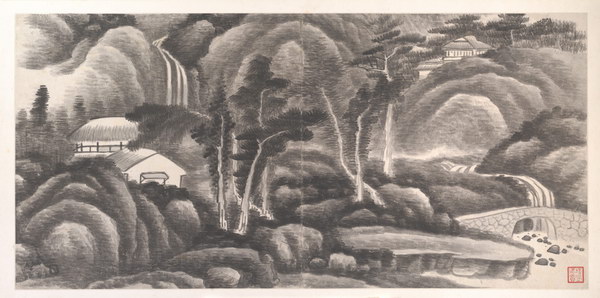 形制尺寸:册页,纸本,水墨,30.2×62.9厘米