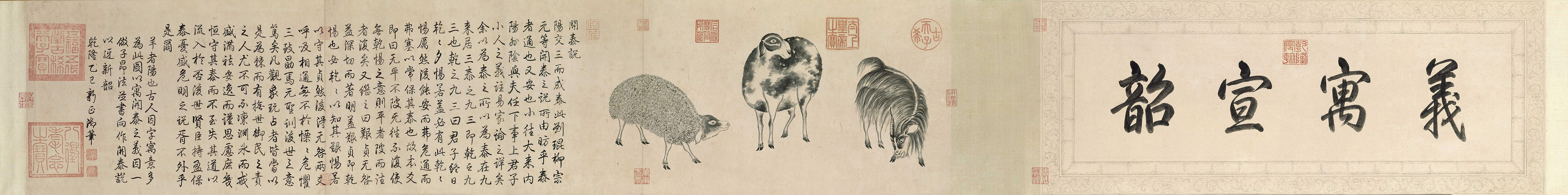 乾隆帝于三十七年春所作《三阳开泰图》即是一幅仿古而来的花鸟画作。乾隆帝在画题立意上仿照明宣宗之作、造型画法上参考郎世宁之作,绘制出具有新春祈福寓意的仿古花鸟画——《三阳开泰图》。新年得遇“岁朝春”是仿画的契机,前一年遭受“畿南秋沴”是仿画的动因。面对时常漫漶的河患,乾隆帝除去自省吾身,还通过于特定时间仿画特定题材的画作,表达对好天气的祈愿。