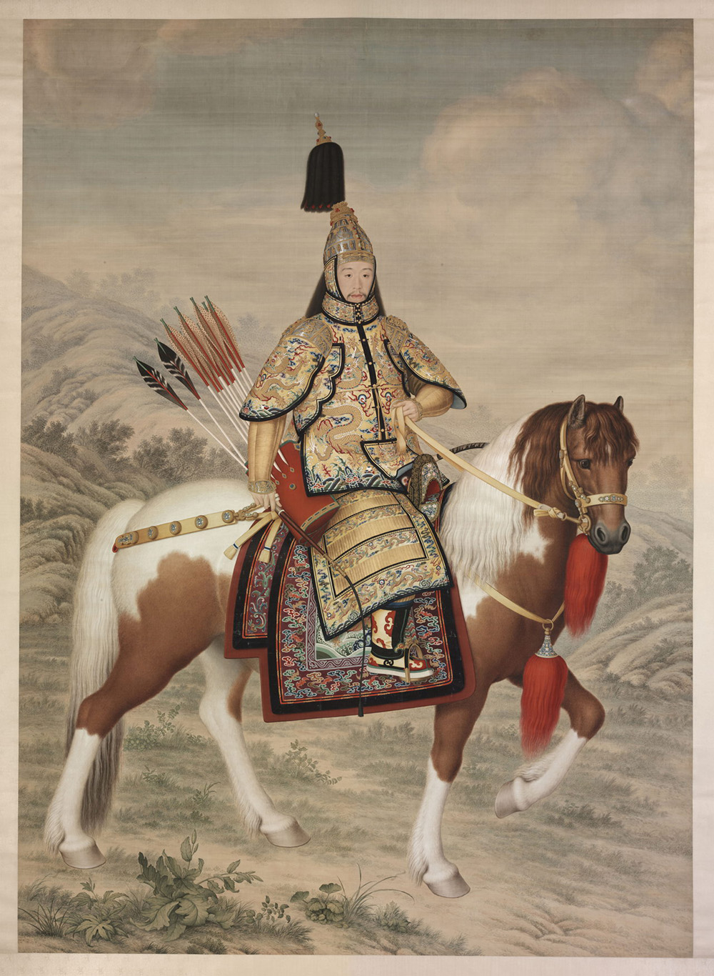 又名:乾隆皇帝大阅图轴,本幅无作者款印,据作品画风,无疑系郎世宁真笔。