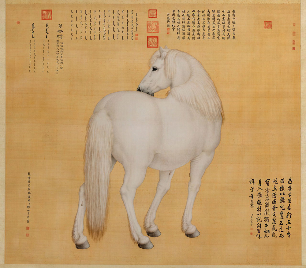 乾隆八年(1743年,癸亥),郎世宁绘制《十骏图》轴,万吉骦被称赞为十骏之首。画上文字记载:“喀尔喀郡王多尔济札尔进,高四尺二寸、长七尺一寸五分。乾隆癸亥孟春,海西臣郎世宁恭画”