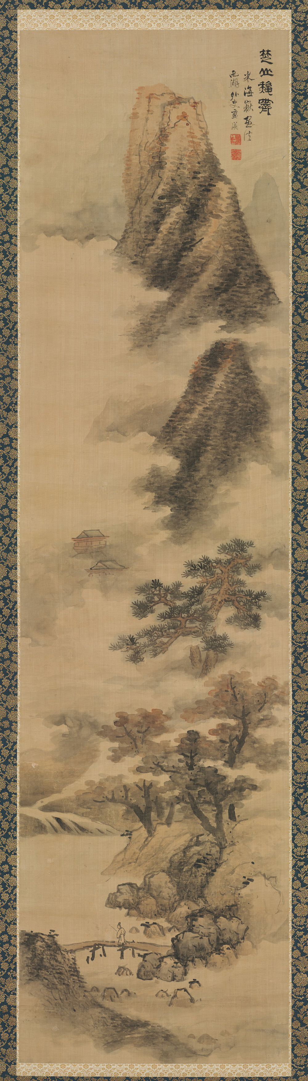 款识:楚山秋霁,米海岳画法,西湖外史蓝瑛。