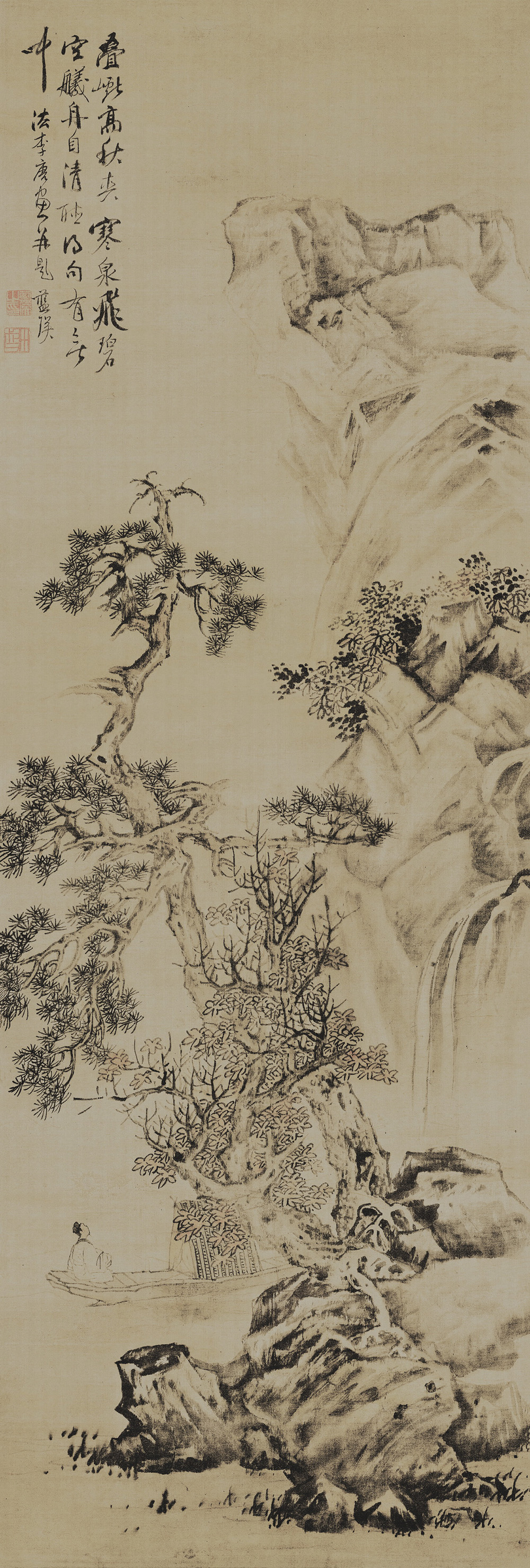 款识:叠巘高秋爽,寒泉飞碧空,舣舟自清听,得名有无中。