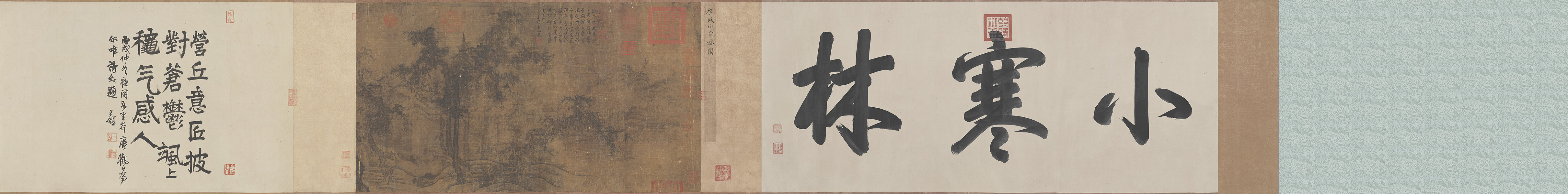 题跋:卷首乾隆题:小寒林、画心中部上方有乾隆题诗,卷尾有清王铎题跋,不录。
