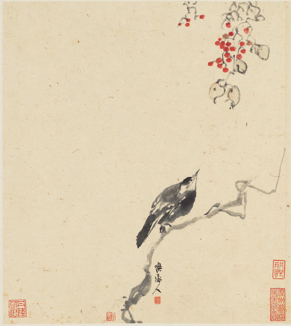 张石题跋:此册花草虫鸟,设色用笔栩棚欲活,真写意而不失其意者,扬州八怪外省本领不相掩袭,故能传之久远,共为世所宝玩也。丙辰春读画楼主人识。