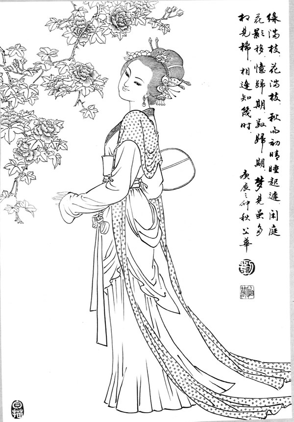 本书是以古装仕女为题材,以白描手法表现的一套仕女人物画谱。书中含有各种姿态的人物造型,人物包括历代社会各阶层的女性形象。