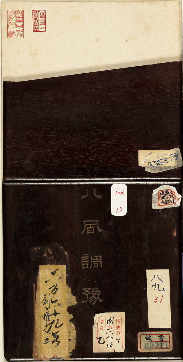 钤印:嘉慶御覽之寶、嘉慶鑑賞、石渠寶笈、三希堂精鑑璽、宜子孫、嘉慶御覽之寶、惟幾惟康、宣統御覽之寶、寶笈三編