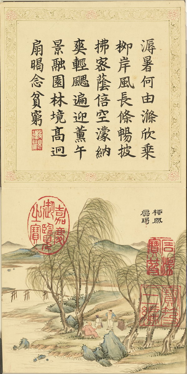 溽暑何由滌。欣乘柳岸風。長條暢披拂。密蔭倍空濛。納爽輕颸遍。迎薰午景融。園林境高迥。扇暍念貧窮。