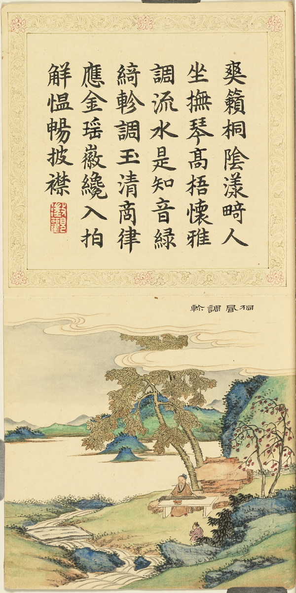 爽籟桐陰漾。畸人坐撫琴。高梧懷雅調。流水是知音。綠綺軫調玉。清商律應金。瑤徽纔入拍。解愠暢披襟。