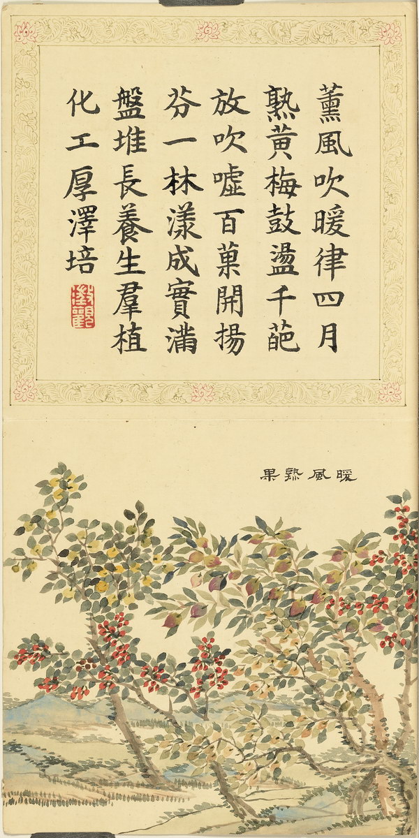 薰風吹暖律。四月熟黃梅。鼓盪千葩放。吹噓百菓開。揚芬一林漾。成實滿盤堆。長養生羣植。化工厚澤培。