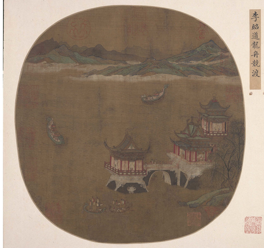 龙舟竞渡图扇 | 唐代/李昭道(传)