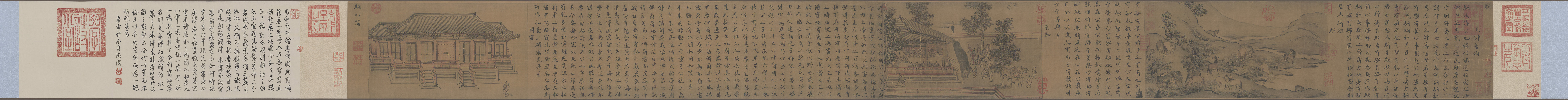 形制尺寸:卷轴,绢本,设色,26.2×542.8厘米