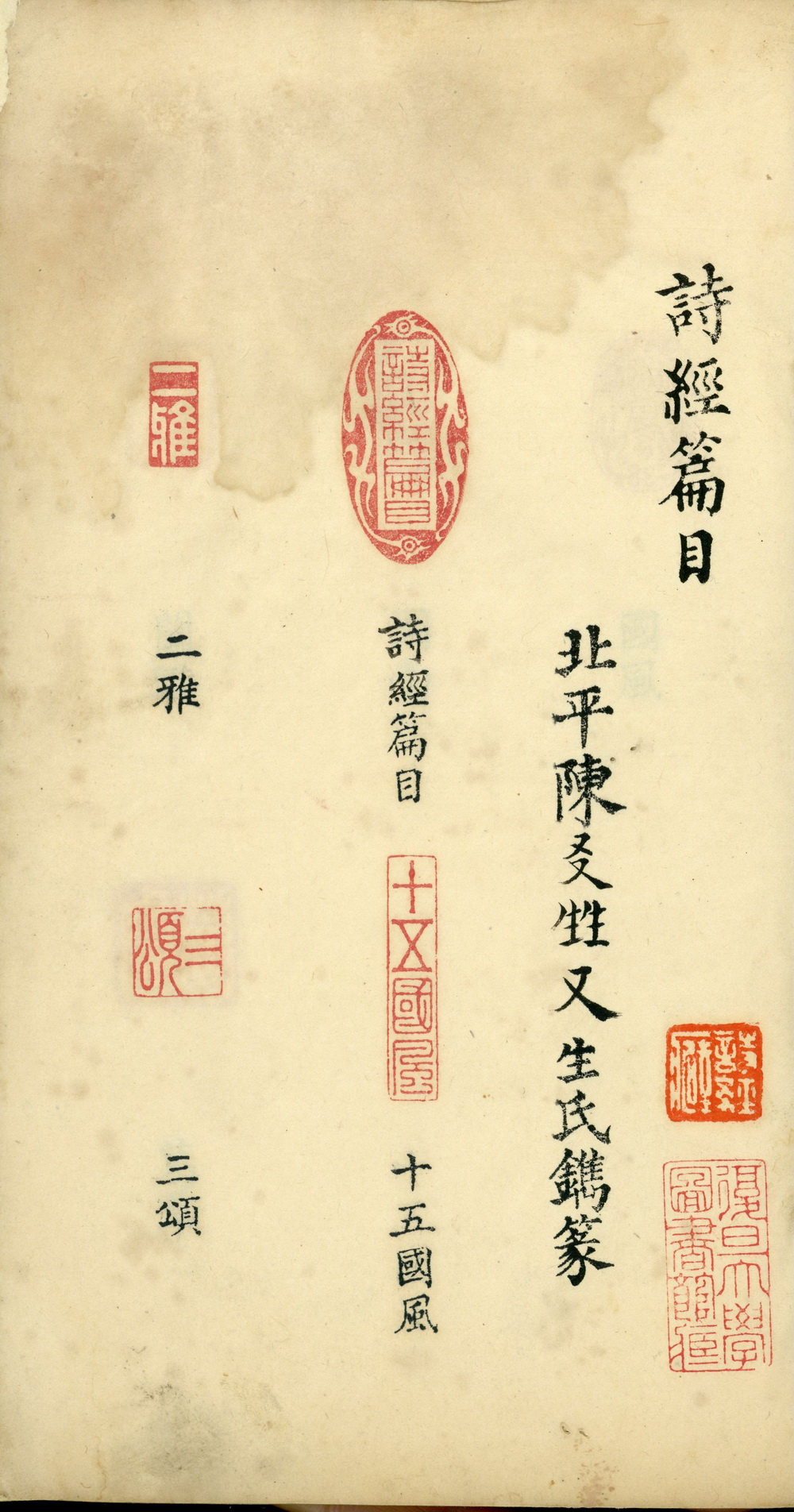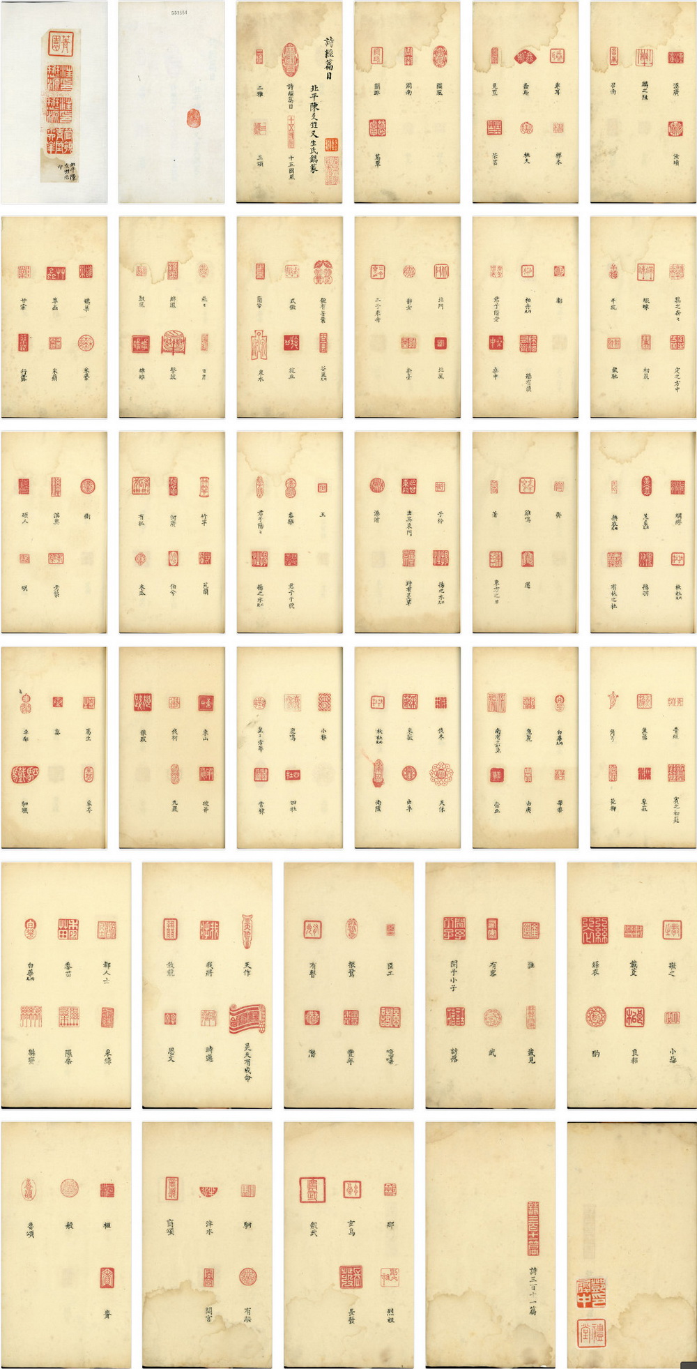 诗经篇目印谱,北平,陈友甡镌篆,民国时期钤印本。研究民国时期的艺术风貌、篆书发展以及《诗经》的传承提供了宝贵的实物资料。