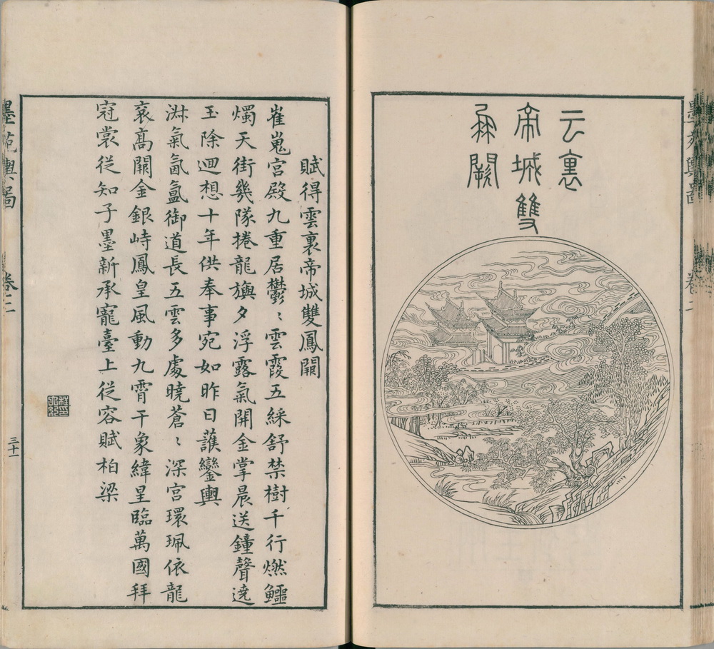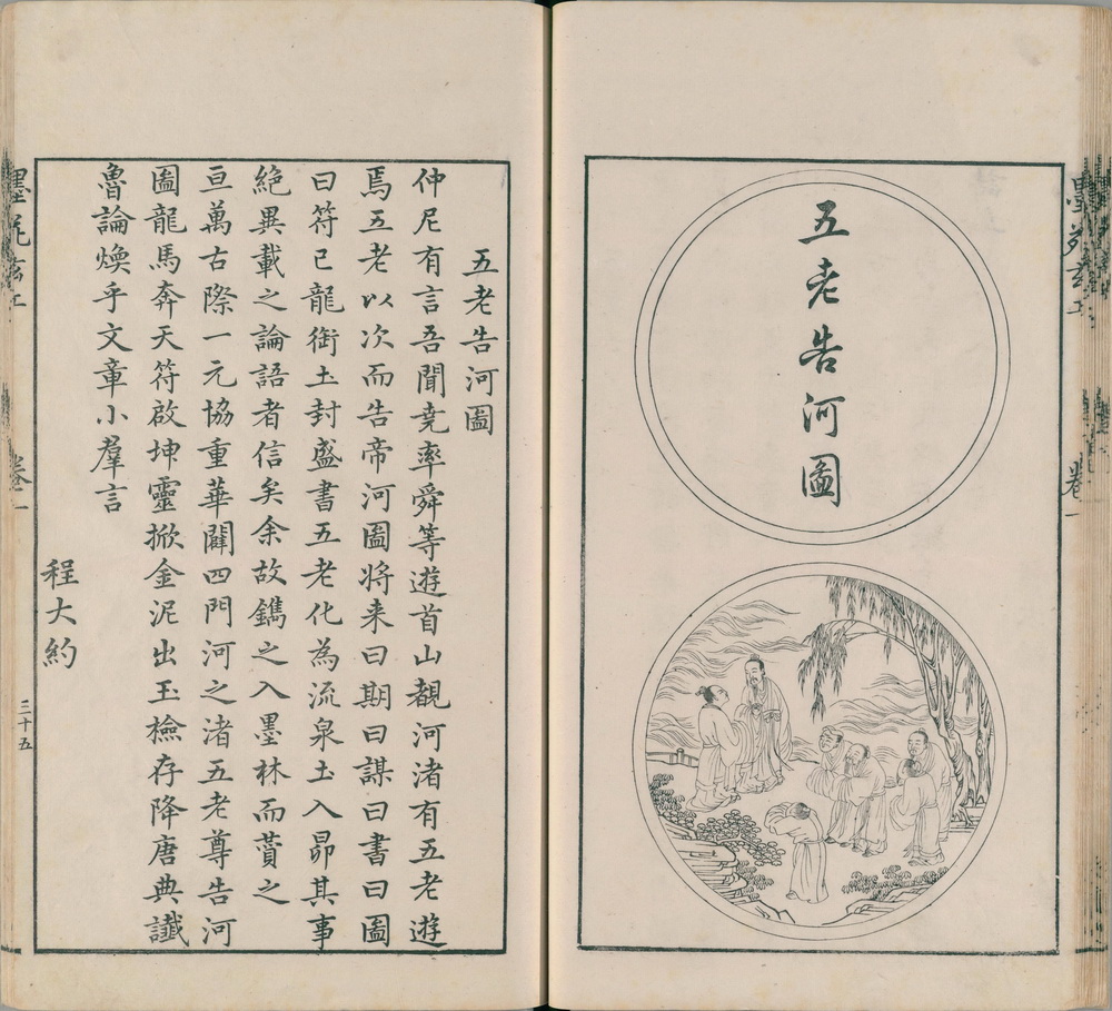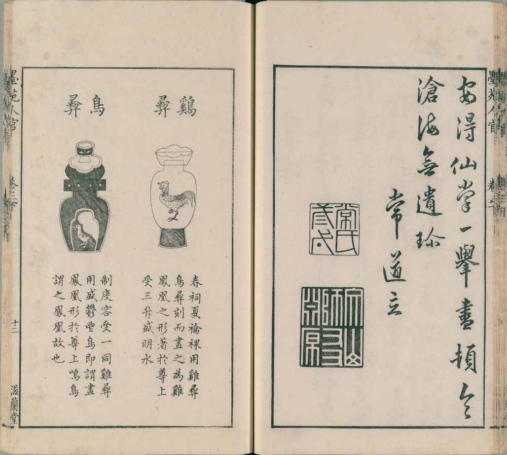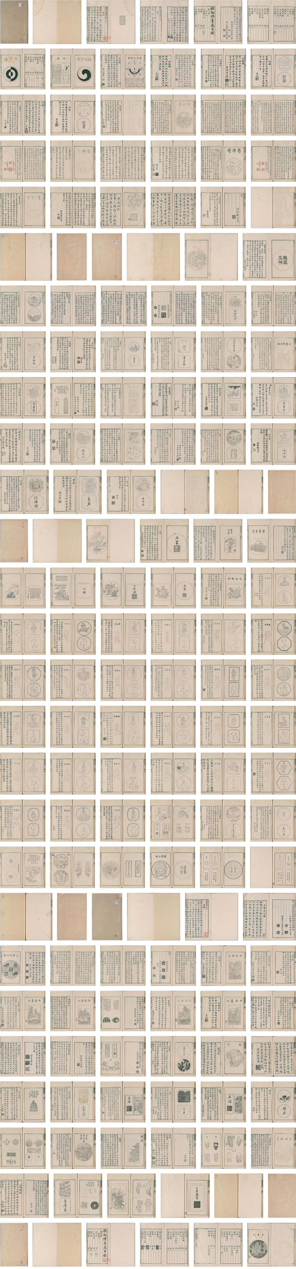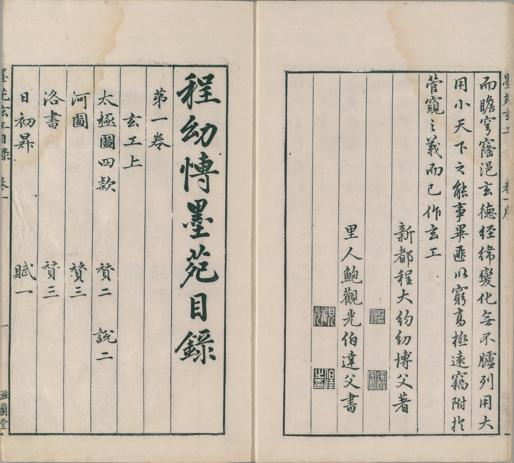 全书工含墨图十二卷(缺卷二),人文爵里七卷。收程氏所造名墨图案383图,其中彩色图版29幅。缺失的主要是舆图、物华、缁黄其中的部分页面。
