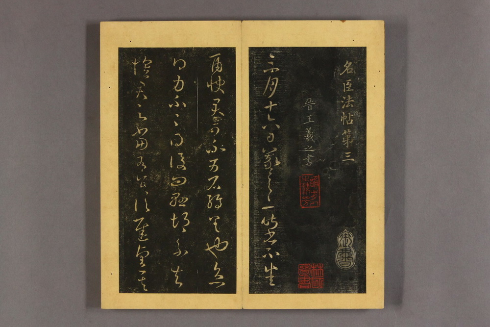 《名臣法帖》十册,搜集历代名臣书法。应该是宋庆历三年释希白摹勒,方淳模刻。此本具体刊印时间不详。此帖卷末有“庆历三年癸未岁冬十月慧照大师希白潭摹勒上”等语。