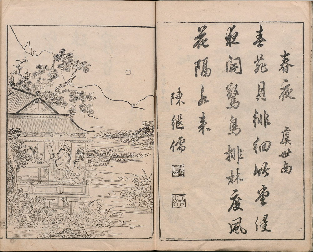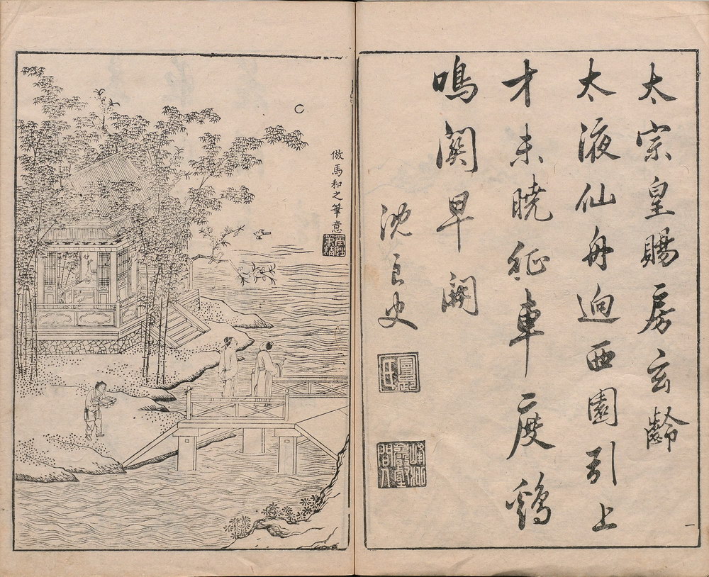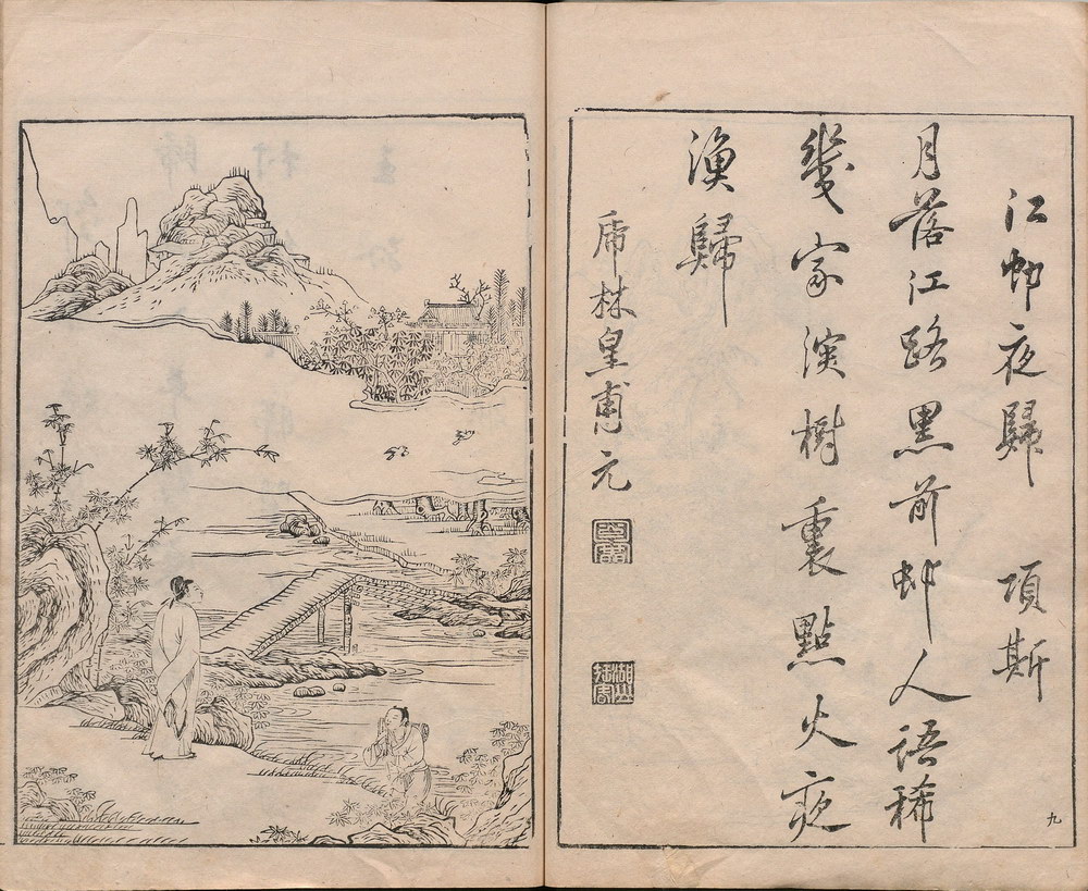 《唐诗画谱》由明代集雅斋主人黄凤池编辑,为诗、书、画三美合一的版画图谱,是徽派版画代表作之一。