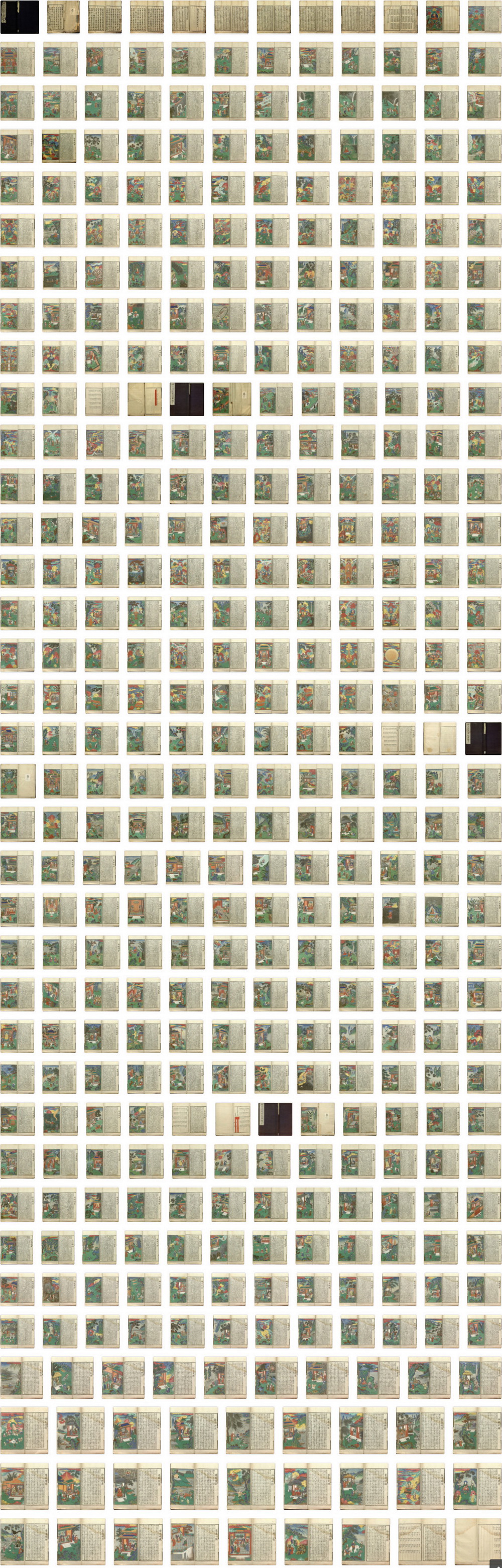 《释氏源流应化事迹》根据报恩寺沙门释宝成《释迦如来应化录》改编而成。全书共四卷,是先图后文的劝善书,有彩绘四百多页。此书主要敘述释迦如来生平故事,以及佛教在印度和中国的传播史,相当于一部图说佛教简史,可以作为佛画绘画的参考资料。