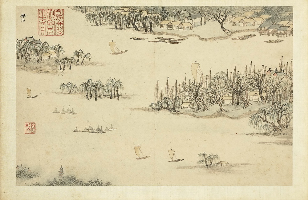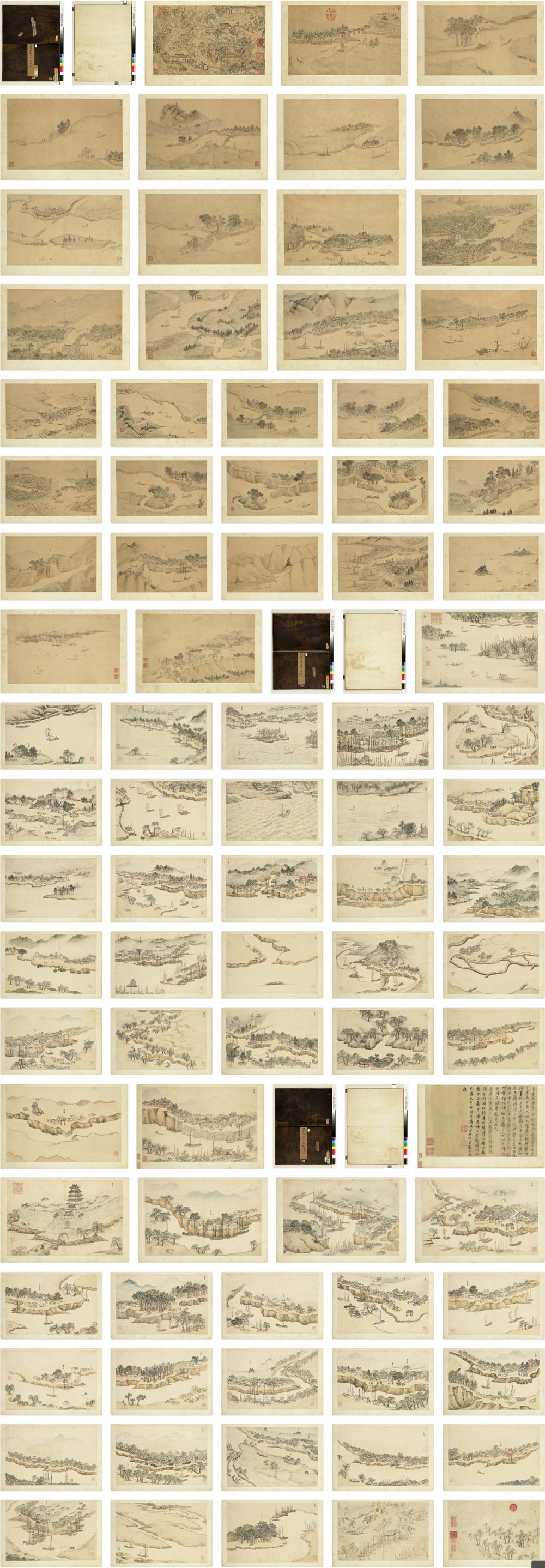 全套分为上中下三册,共含图八十四开(始于:小祇园,终于:通州)。画册内容为明万历二年王世贞从家乡太仓经大运河进京的旅程纪录。除了展现了沿岸的山川风物景致,也包含了行政机构和河道设施。这本画册的前三十二开由钱谷绘制,描述了从小祗园到扬州的路程。后五十二开则是张复在与王世贞北上途中所绘制的画,经过他的老师钱谷的润色后完成。该画册的内容与传统的胜景图不同,除了展现了沿岸的景色外,还包括了以前没有绘制过的行政机构和河道设施。这些纪实的图像是在王世贞的指导下完成的,这也反映了王世贞希望通过这些图像来保留历史的意愿。