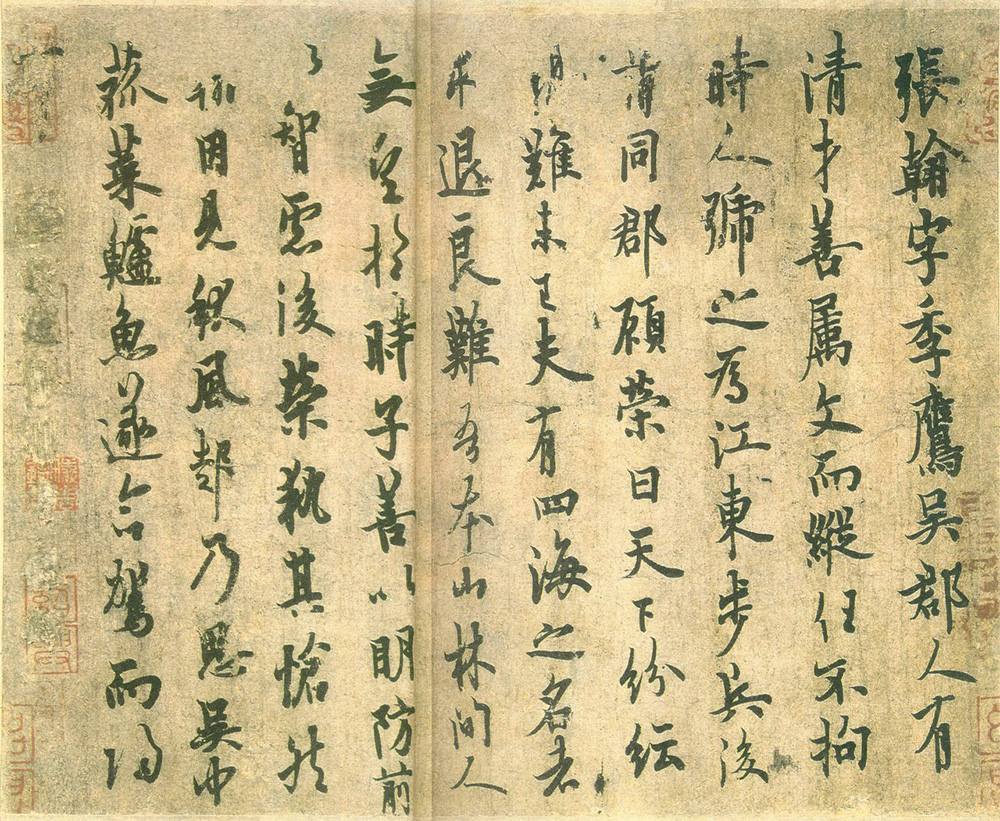 此帖也称《季鹰帖》,是欧阳询为张翰写的小传,属于行楷,无款。共十行,每行九至十一字。字体修长严谨,笔力刚劲挺拨,风格平正中见险峻之势,是欧书中的精品。