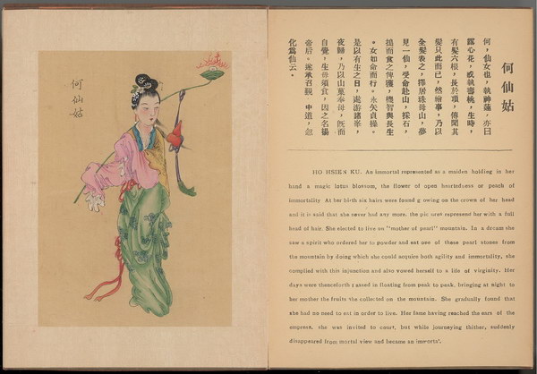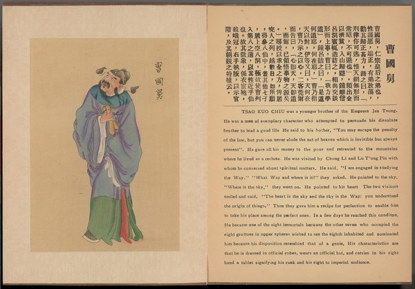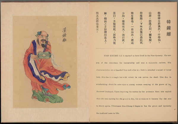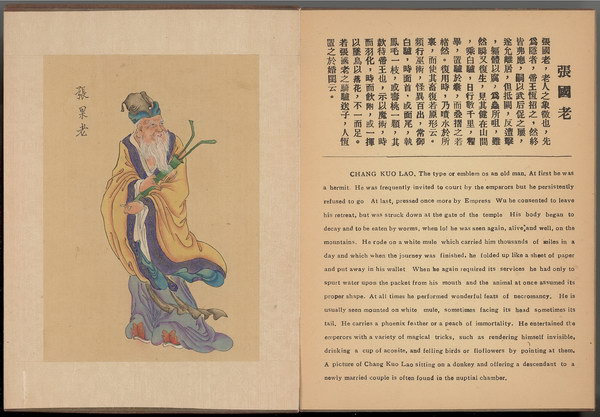 描绘了西王母、老寿星及八仙共十幅。版式为左图右文,介绍使用了中英文双语,封面均阴刻“福”字。