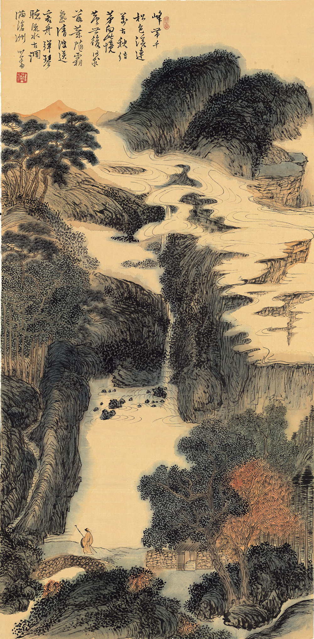 形制尺寸:图轴,绢本,设色,110.5×55.3厘米