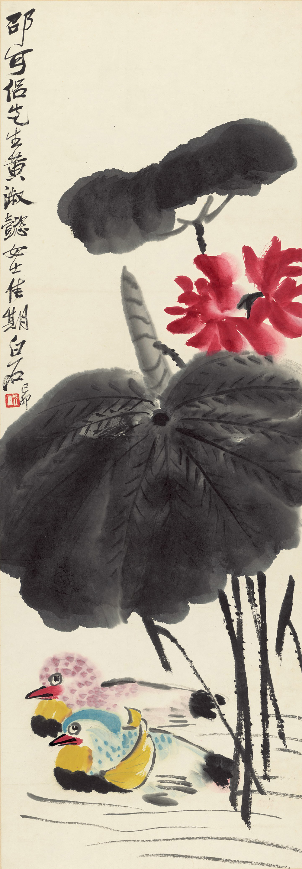 致邵可侣伉俪荷花鸳鸯镜心 | 近现代/齐白石