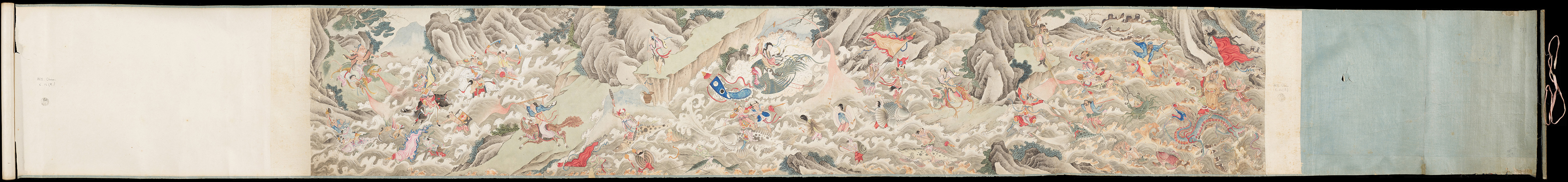 本幅描绘中国民间传说中的八位神仙(即铁拐李、汉钟离、蓝采和、张果老、何仙姑、吕洞宾、韩湘子、曹国舅)过海的故事:八仙遨海,顿时海面如翻江倒海,东海龙王恼羞成怒,率兵出来干涉,结果双方展开了一场斗法较量,最后八仙分别拿出自己的法宝,获得胜利。