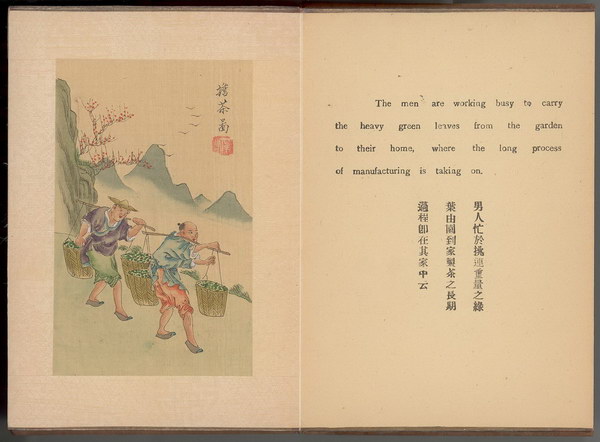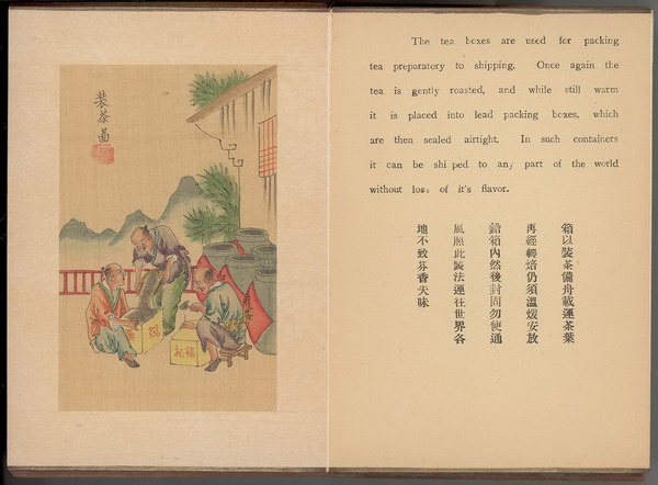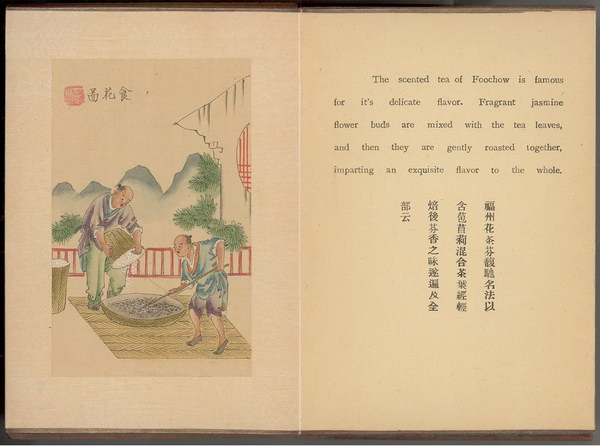 大致描绘茶叶采摘和制作流程,版式为左图右文,介绍使用了中英文双语,封面均阴刻“福”字。