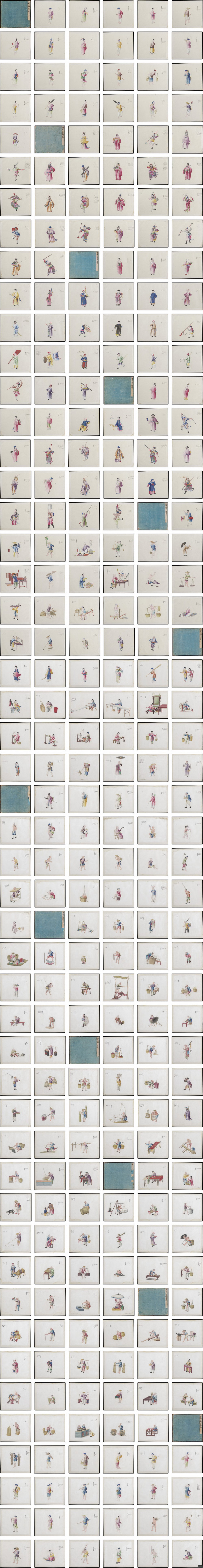 清末广州画坊为欧洲人绘制,配有汉字说明,内容涉及清末各行业、及历史神话人物,在欧洲,这些形象被视为了解中国社会的可靠来源。