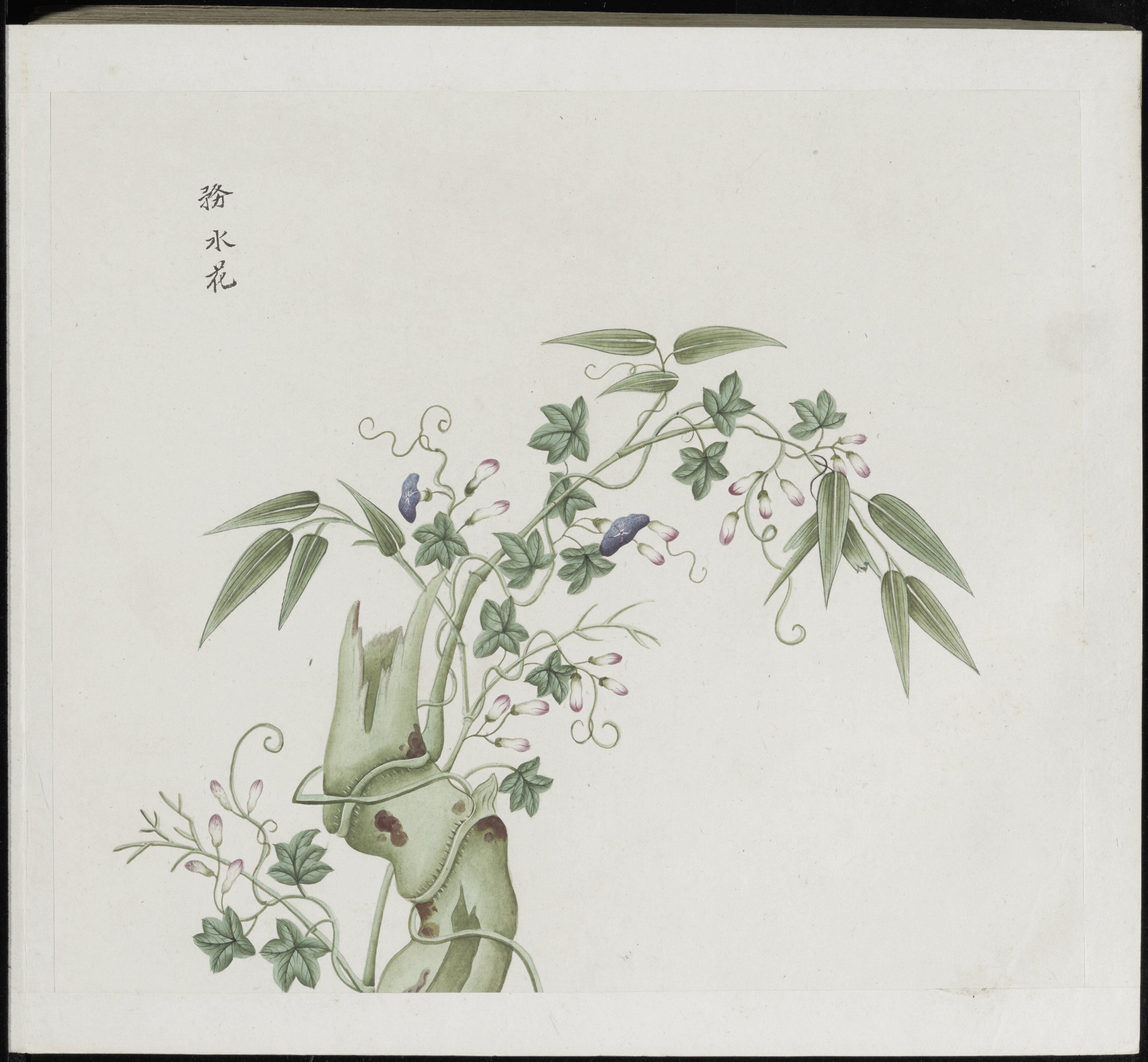 此套共十二册,每册一百幅,并配有汉字说明。内容为昆虫、金石、草木、花果、菜藤等一千两百种中药材。清末广州画坊为欧洲人绘制外销画。这套水粉画约绘制于十八世纪晚期。