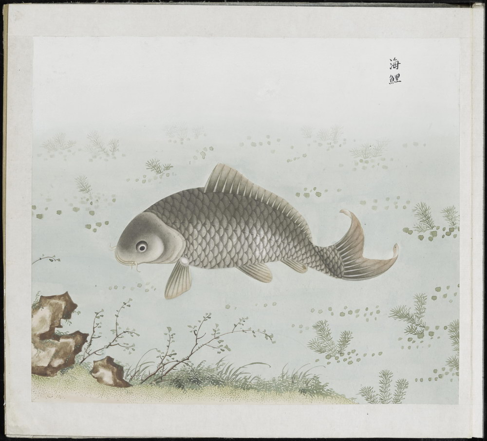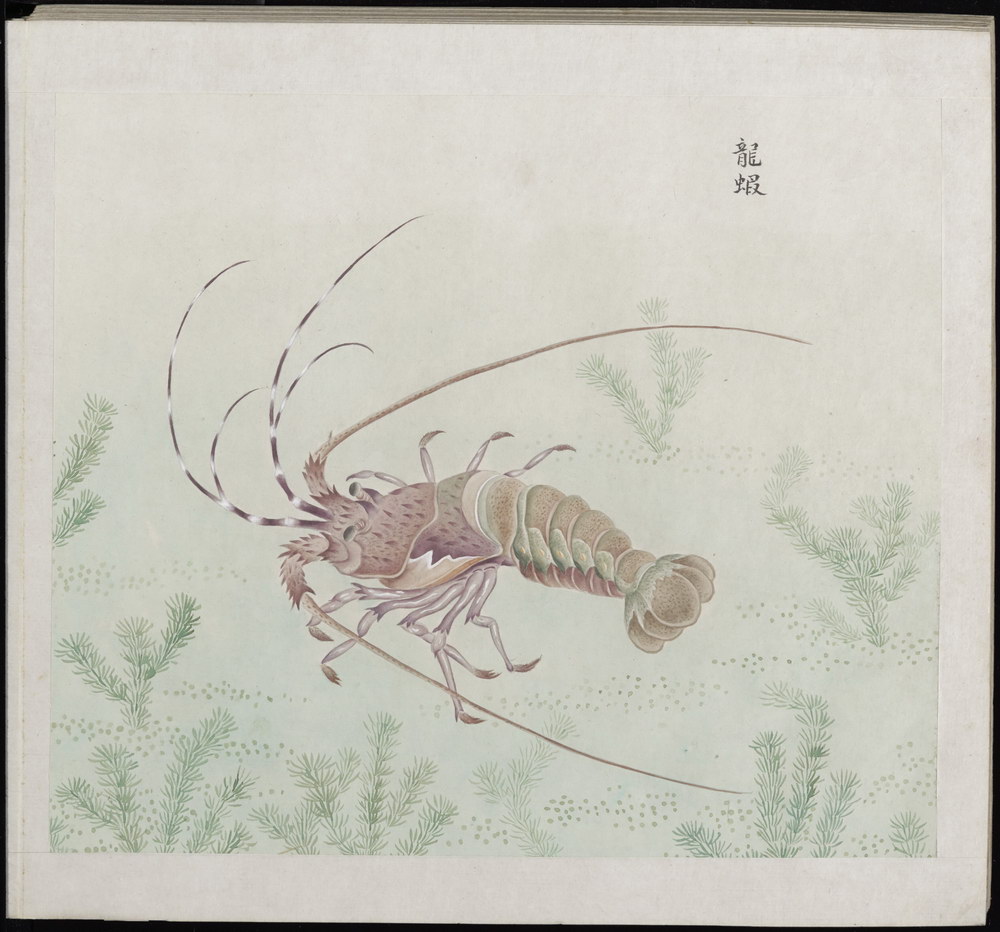 清末广州画坊为欧洲人绘制,配有汉字说明,内容为各类鱼虾图谱。约绘制于十八世纪晚期。