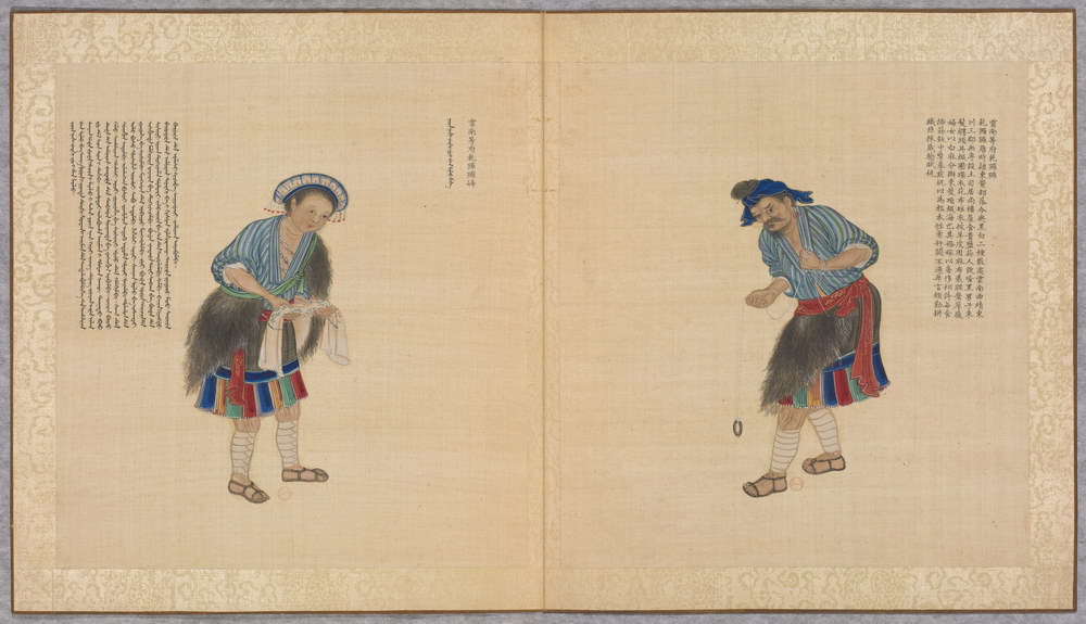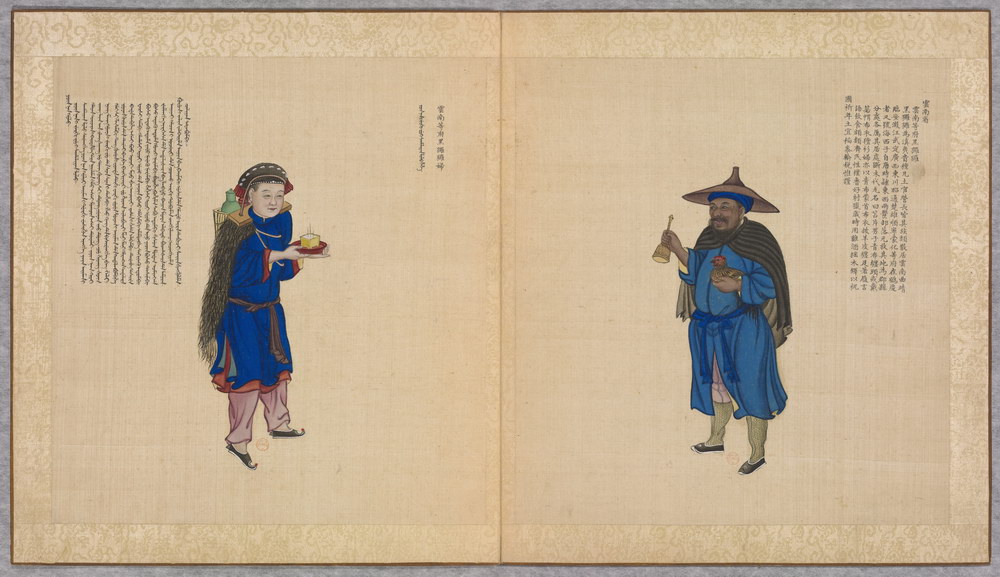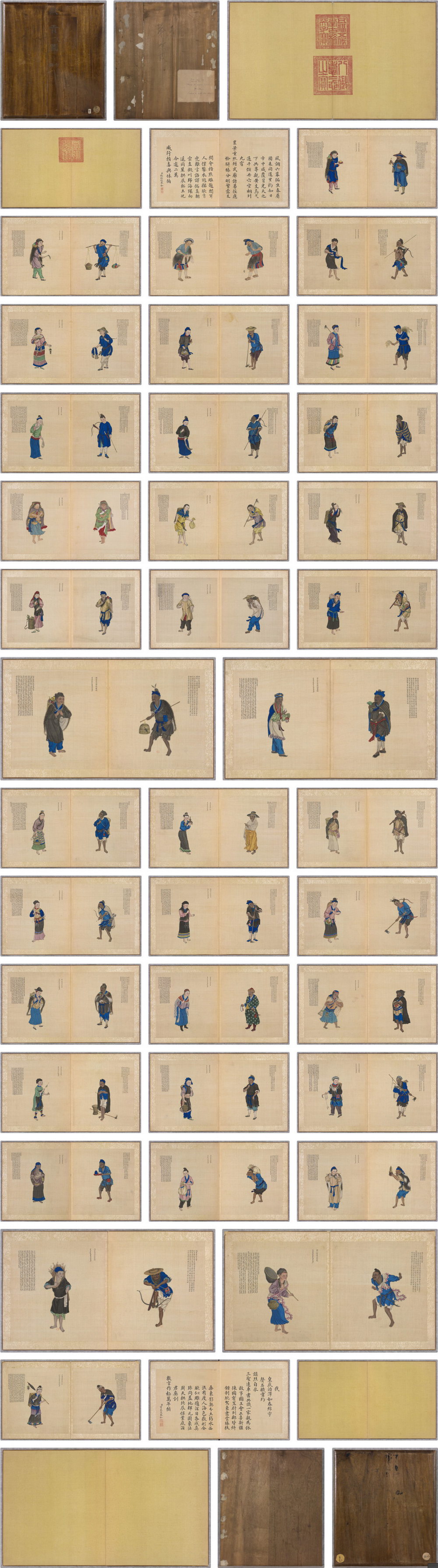 《职贡图》以鲜活而丰富的精湛笔触展现出海外诸国及国内各民族缤纷各异的服饰和外形。通过这套作品,乾隆既颂扬了自己统治时期的盛世荣华,也给后世留下了难得的绘画遗产。18世纪中叶乾隆帝下令绘制的这套各民族人物图录史籍现存仅有8或12册。