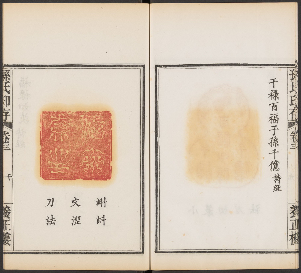 《孙氏养正楼印存》(养正楼福禄寿印存)是一部取易书诗礼、子史百家福禄寿之成语等成的印谱,由清代孟介臣篆刻,孙阜昌鉴藏。全书共六卷,内分百福、百祿和百壽印各两卷。