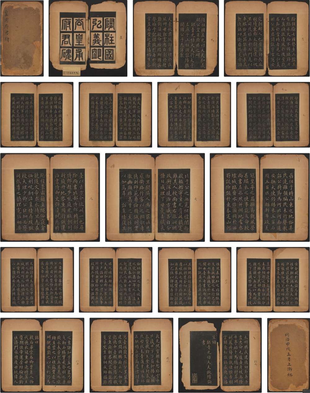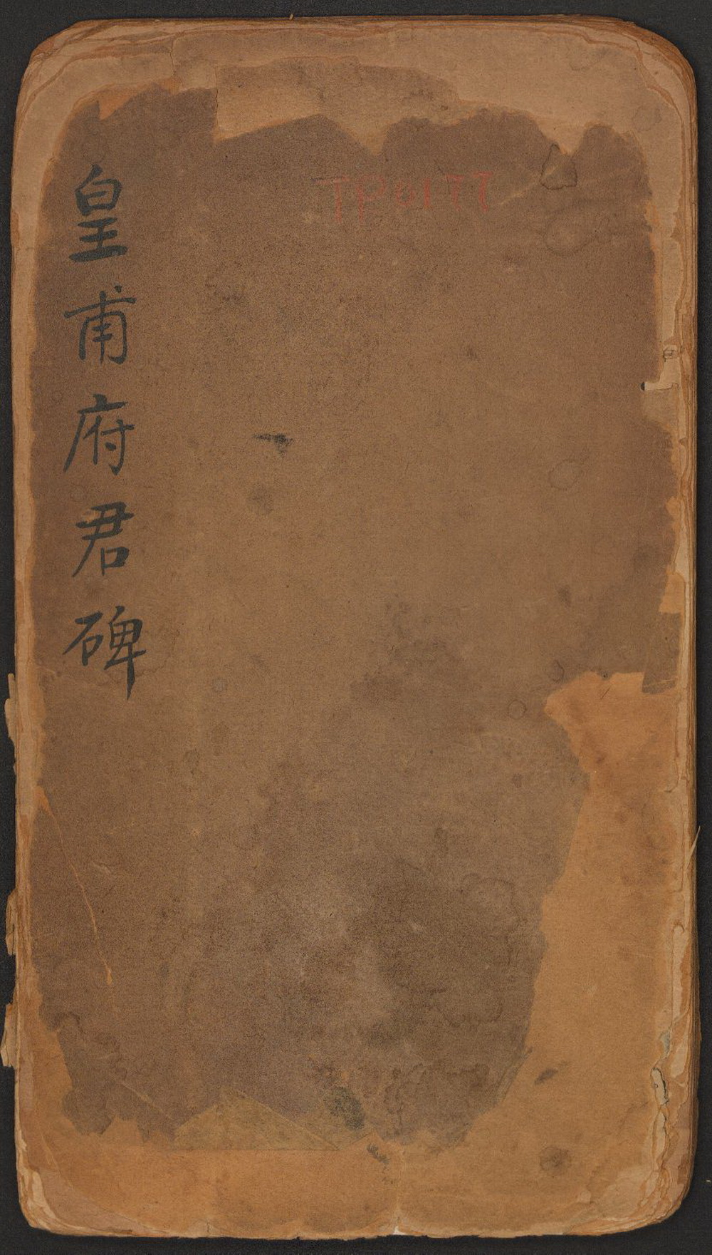 此碑现在西安。碑额篆书“隋柱国宏议明公皇甫府君碑”。此碑在明代已断为两截。清拓本系据北宋拓本缩小翻刻之石拓印, 字迹完好无损.封底有”同治甲戌五月上澣纪”字。