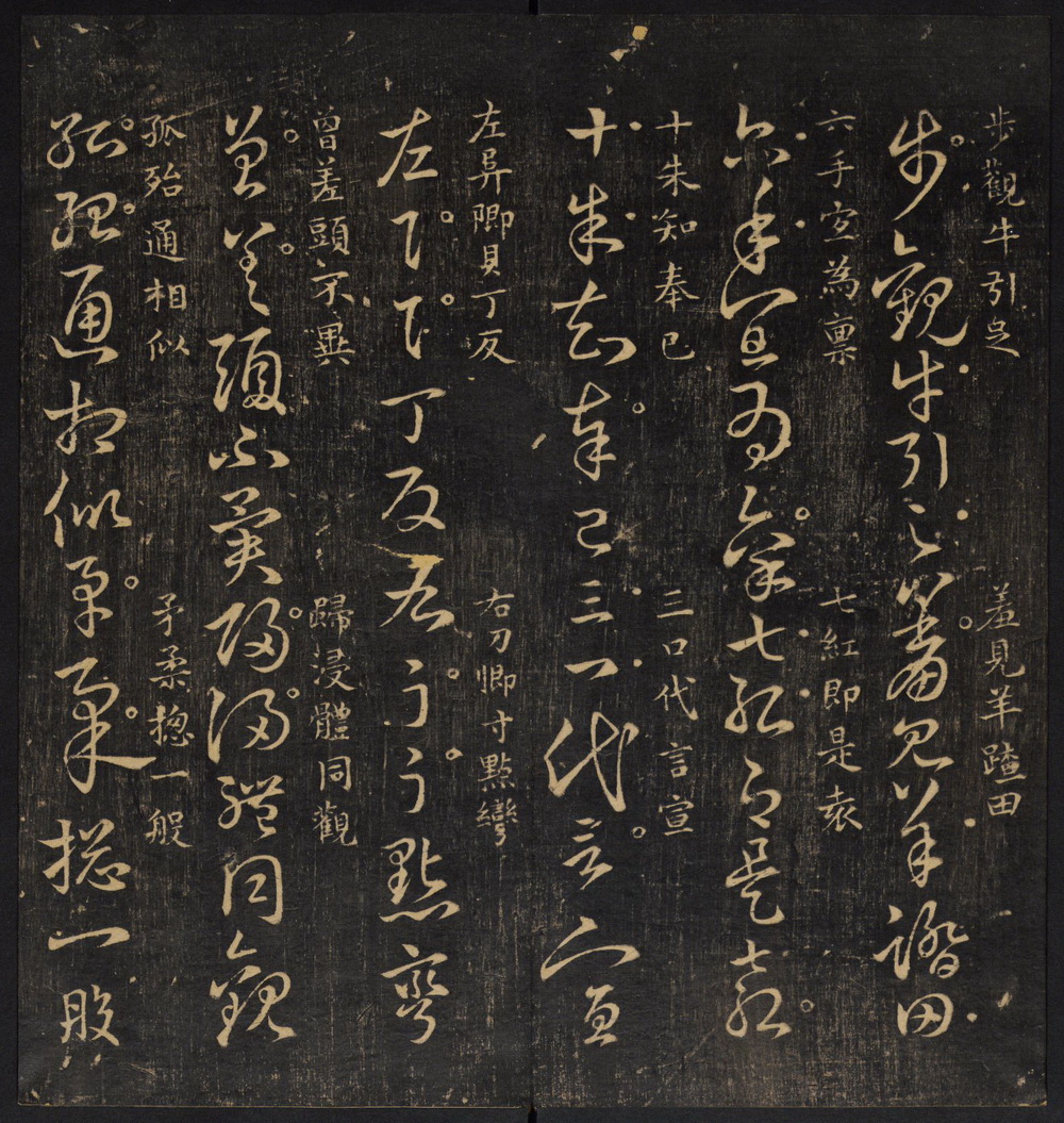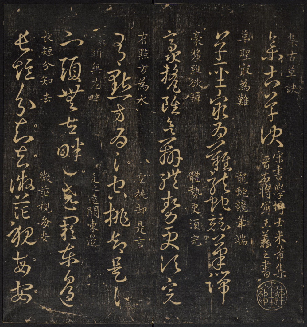 《集古草诀辨疑》为明代万历年间编撰并摹勒刻石的一部草书集字帖。此集精心刋刻了王羲之、王献之、怀素、孙过庭、宋克、祝允明、文徵明等历代书法名家的草书字体,对其中某一家、某一字的草书写法同时列举,并附楷书释文,便于临写者研习阅读,是一部不可多得的草书名帖。