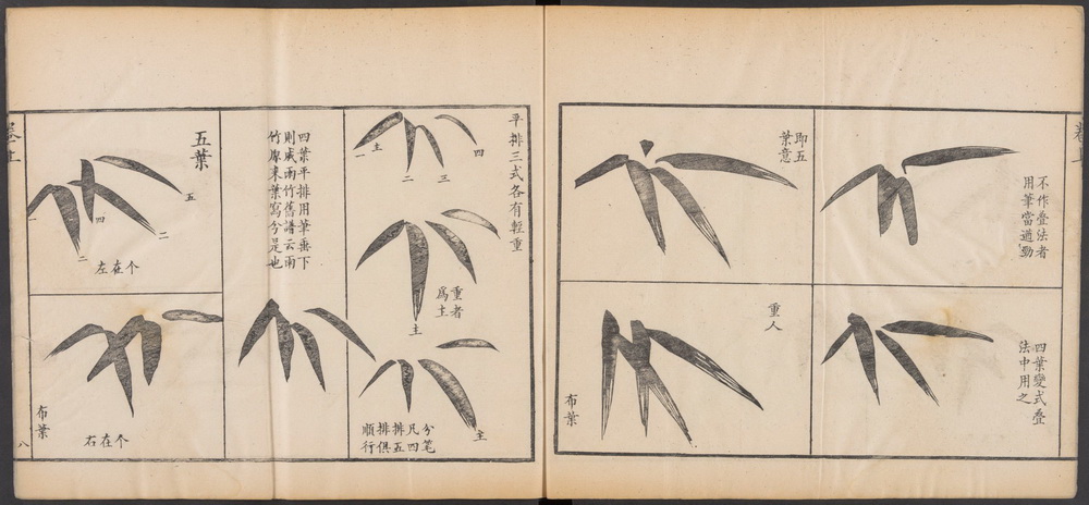 《蒋最峰写竹简明法》为清代乾隆年间书画家蒋和(号最峰)辑,全书分上下卷,前刊作者序,正文介绍竹子的基本画法,特明布叶变法及迭缀结顶梢各法,为图十七章。另集前人名论十二则,蒋氏自着写竹杂记二十一则。