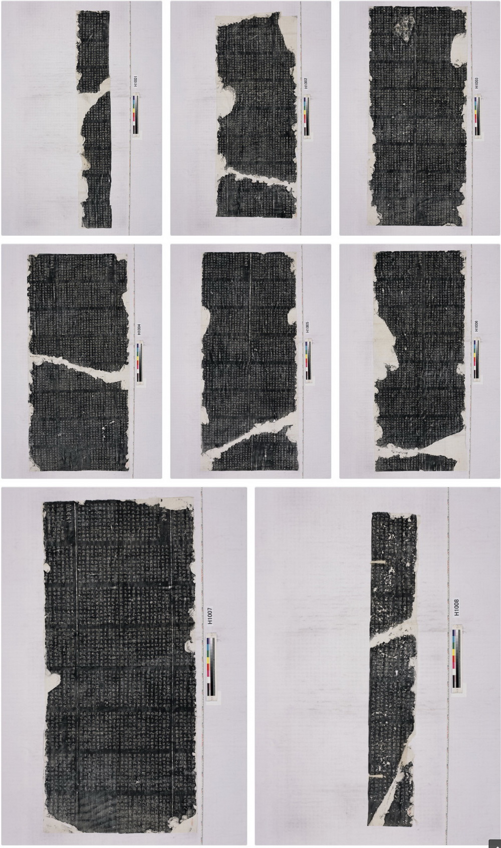 形制尺寸:拓片尺高200厘米左右不等,每碑上下分为八段,每段中每行刻十字