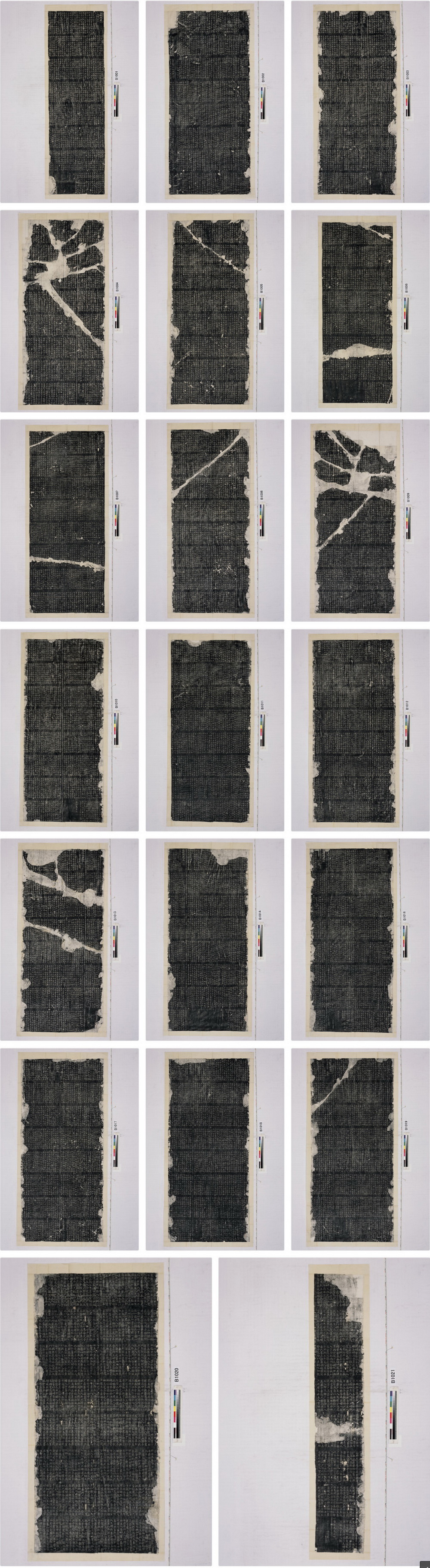 形制尺寸:拓片尺高200厘米左右不等,每碑上下分为八段,每段中每行刻十字